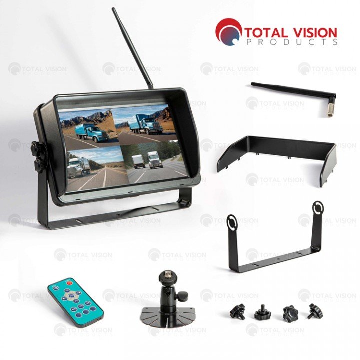 Introducing the 10.1″ HD Digital Wireless Quad-view Monitor by Total Vision Products (TVP). Designed for seamless installation and optimal functionality, this monitor revolutionizes vehicle monitoring with its advanced features. Tailored for trucks, trailers, RVs, and more, TVP’s 10.1-inch HD Digital Wireless Quad-view Monitor offers an effortless setup process, thanks to its auto pairing capabilities. This innovative technology ensures that the wireless monitor and camera work seamlessly together upon initial connection to the vehicle’s power supply, saving both time and resources.